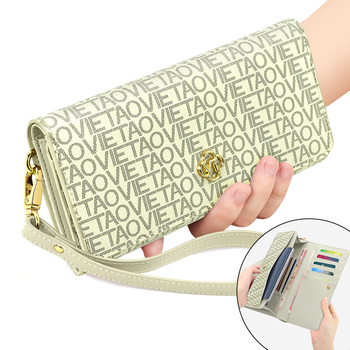 VIETAO, Cartera de lujo de alta gama de gran capacidad para varias tarjetas, bolso de acordeón con cierre de cremallera de cuero PU de gama alta, monedero con forro de nailon
