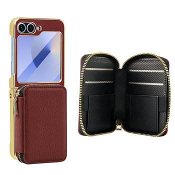 Funda de teléfono de cuero PU magnética VIETAO patrón de guijarros billetera de tarjeta con cremallera desmontable Compatible con Galaxy Z Flip 7 6 5 4 3