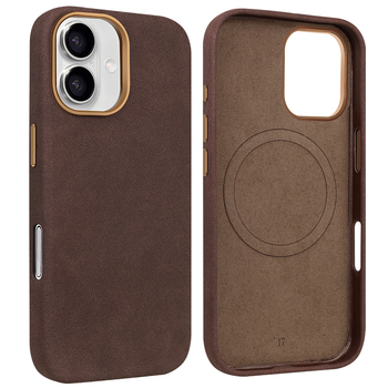 Étui de téléphone sans fil magnétique haut de gamme tout compris pour iPhone 16 15 Pro Max marron pour cuir PU daim Alcantara