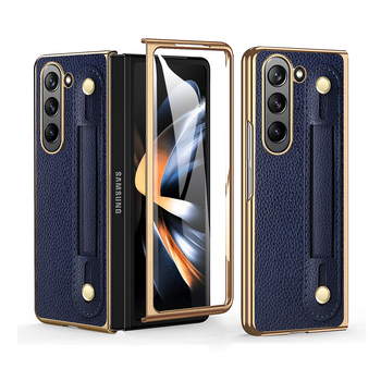 Commercio all'ingrosso per Samsung per Galaxy Z piega 5 Z 4 casi di cuoio del telefono in oro elettrolitico telaio del PC bracciale alto telefono cellulare